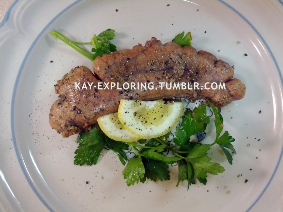 Fried in butter and extra virgin olive oil, S&P, and garnished with parsley and lemon.