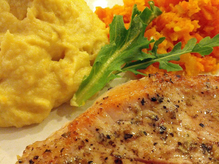 Simple pork – organic, pan-fried, seasoned with S&P.
