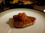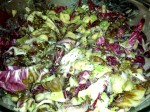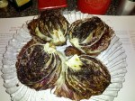 Tuscan dinner. Tuna topped with a sauteed tomato, basil, yellow onion garlic and parsley sauce, and grilled radicchio and cannellini bean salad.