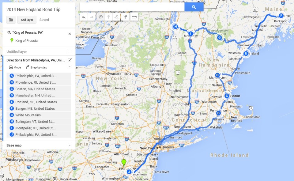 Here’s the current itinerary for our New England road trip route.