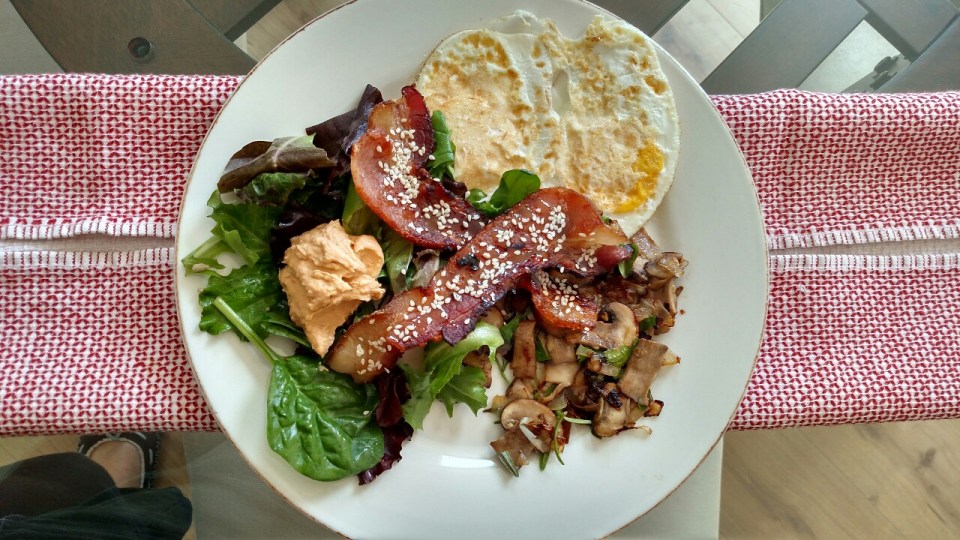 A weekend can’t be a weekend without some kind of cooking; in my case a lazy Sunday brunch. My twist on typical breakfast food includes a little bit of greens instead of starch (sometimes).