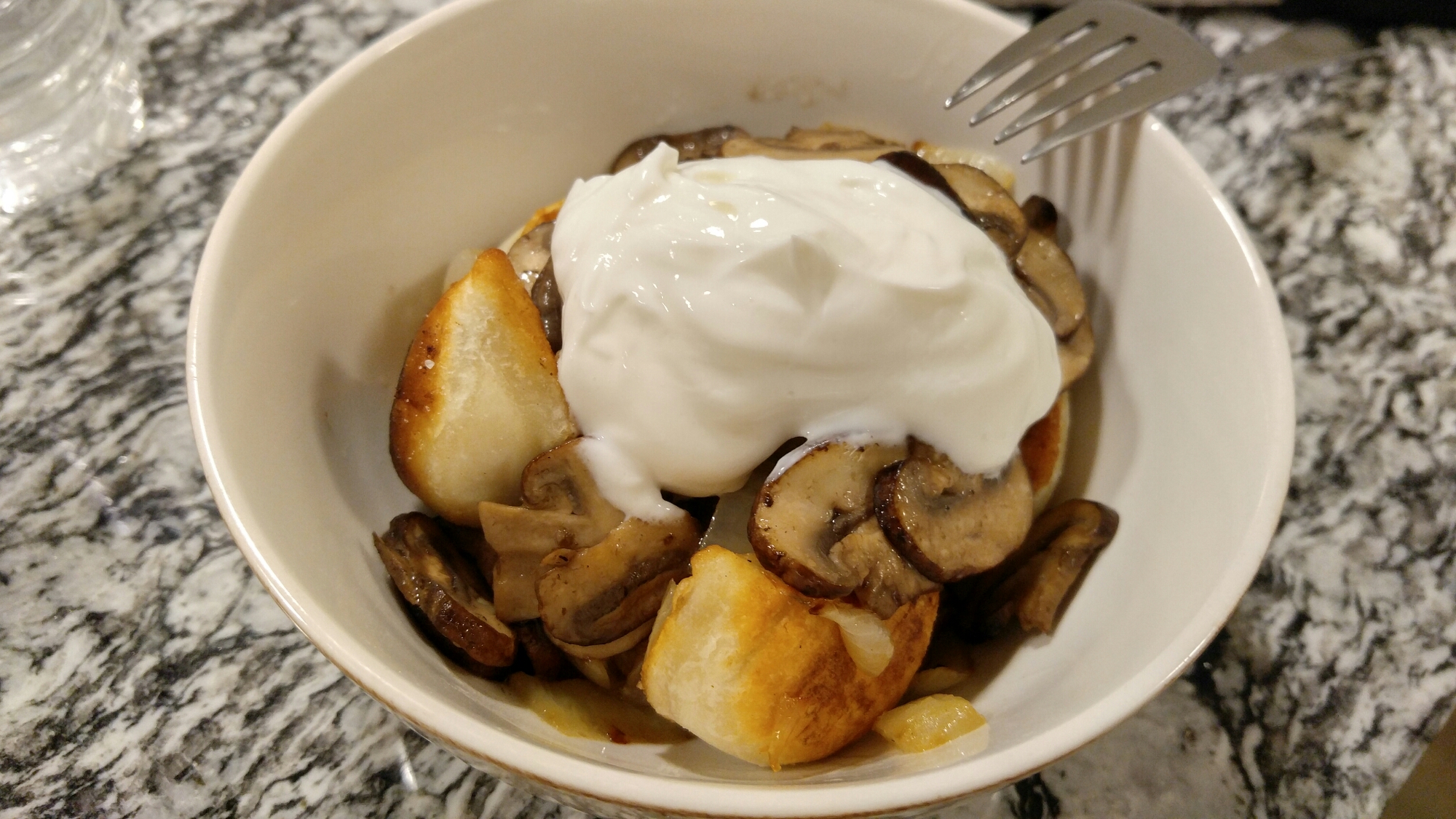 I’m attaching photos of my preparation; sauteed local baby bellas, sauteed and browned sweet onions, pan-fried and crisped/charred pierogies, topped with plain Greek yogurt! So comforting, so easy, and mostly really fast! Oh- and I didn’t forget..nothing unique. So go! Hurry up and pick some up to keep in your freezer next time you don’t feel like cooking an elaborate meal.