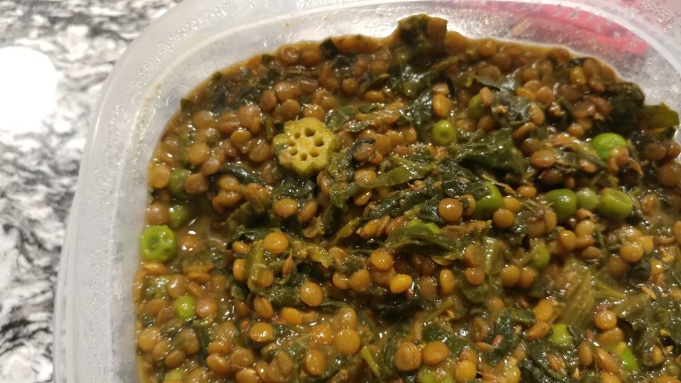It is a curry spotlighting spinach and dal (lentils). One primary driver for choosing the recipe I did from Veg Recipes from India blog is that it is onion-less. I actually ran out of onions today after cooking a chili and making stock.